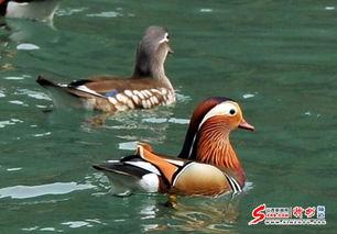 鸳鸯戏水,情意绵绵:一对对鸳鸯水上漂的浪漫画卷